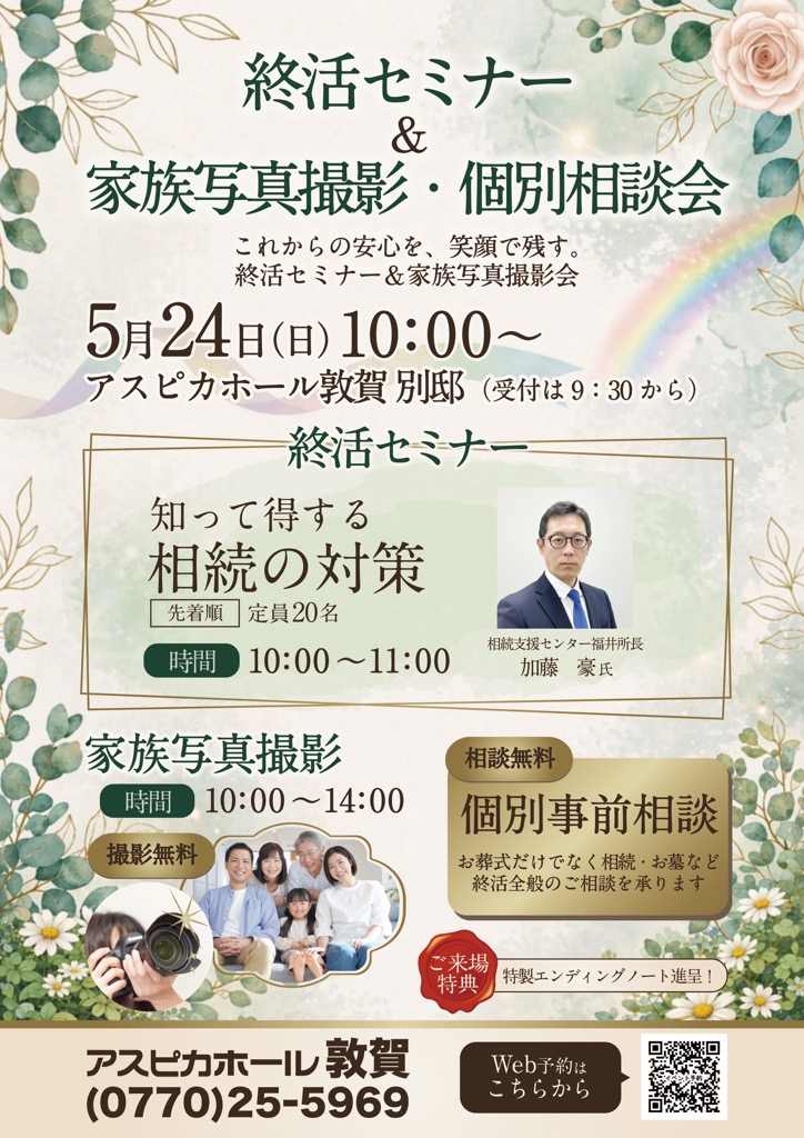 【敦賀草庵】プロによる家族写真撮影&相続対策セミナー開催のご案内